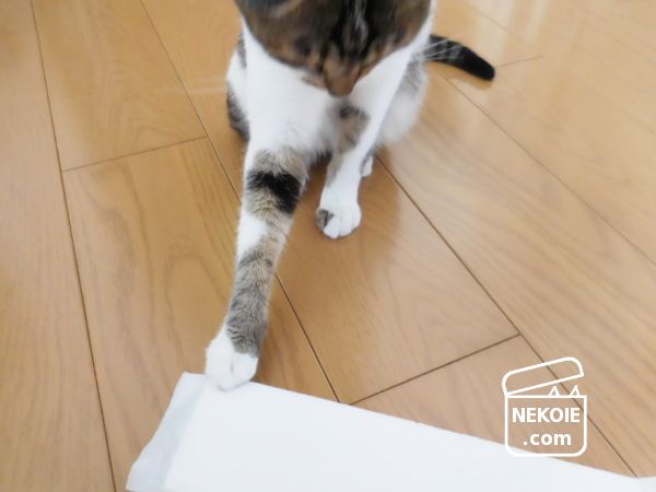 以前にも書いたことがあるように思うのですが、おそらくこれを猫じゃらし(自分のおもちゃ)の一種だと思っている弟猫。