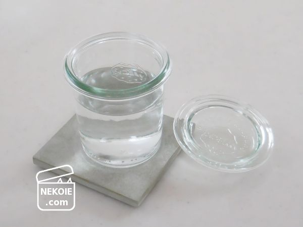 見た目はかわいいし、お手入れがしやすいデザイン。毎朝水を入れ替えるので扱いやすさも重要で、いずれの条件にもWECKは適っていました。