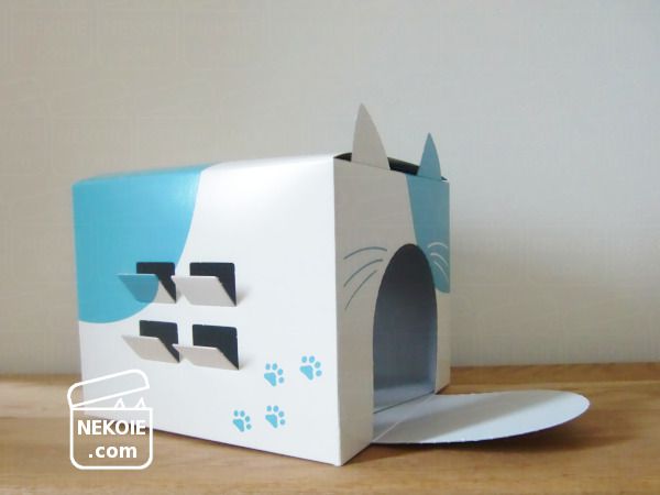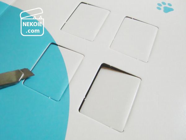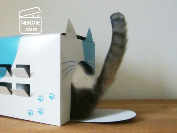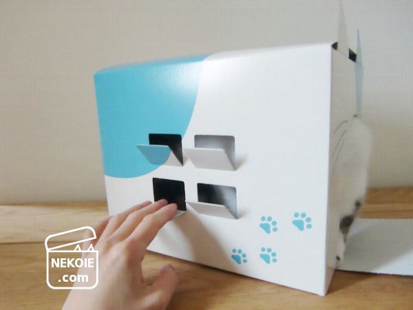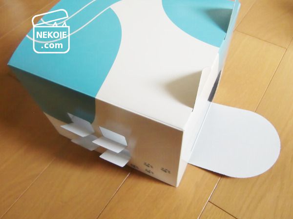 届いた時点ではちょっと大きめの四角い化粧箱ですが、あちこちに入っているミシン目を切り離していくと猫耳や窓が現れます。