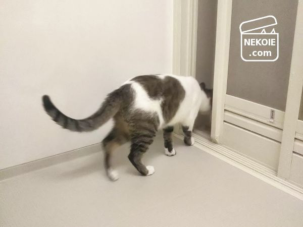 少し前まではお風呂の蓋の上でのびのびと寝転がってすごしていたのに、五分もたたないうちに脱衣室に出たがったり、また戻ってきたがったり。ずっとうろうろしています。