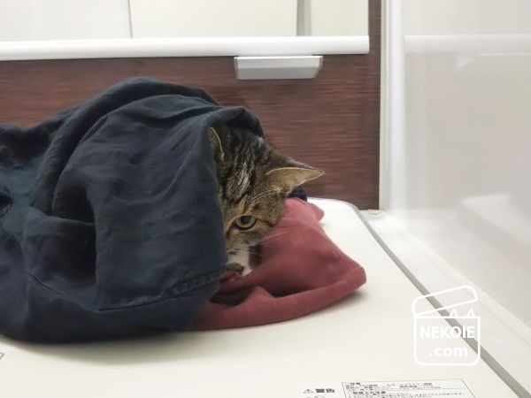 そういえば春先までは私が脱いだ服(セーターとワンピース)を蓋の上に敷いて、猫はその上で寝そべっていたのだと思い出しました。