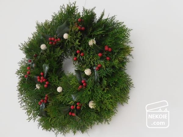 玄関扉に収納性を求めることはないので、クリスマスリースやドライフラワー、お正月のしめ縄飾りなど、何かを飾るためだけに時々使っています。最初の手づくりクリスマスリースのときは一週間ほどで大きな後悔をすることになったので、五年間も無事であればもう心配することはありません。