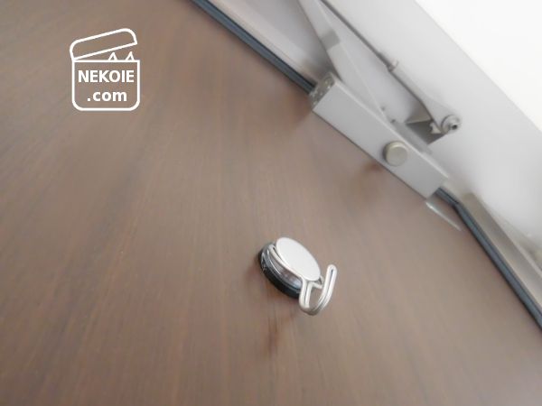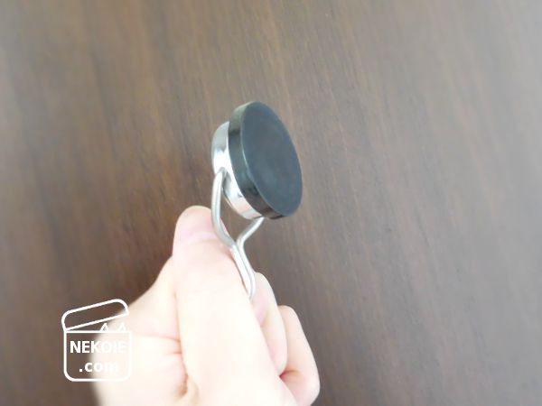 それに加え、弾力のある素材のおかげで扉を傷つけにくいという長所がありました。万が一フックにかけたものが重すぎてマグネットの位置が微妙に下へずれたとしても、扉をこすって傷つける心配が軽減します。