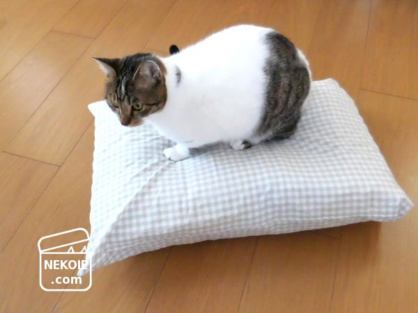 数年前に無印良品で購入した枕カバー(500円くらい)の中に詰めて、猫用のマットレスにしました。
