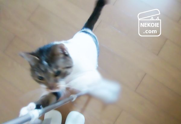 掃除中の私と、モップをストーカーし続けていた弟猫。