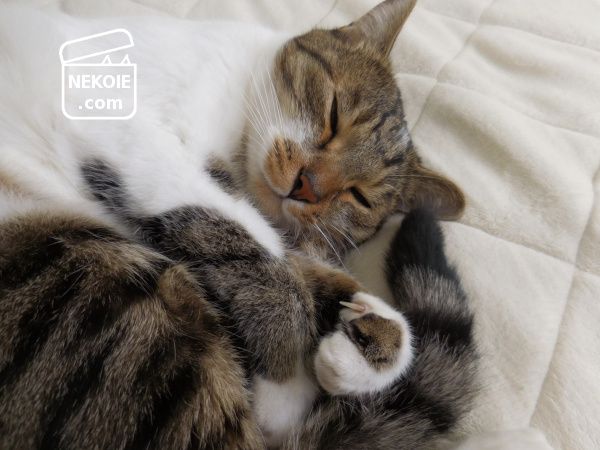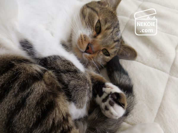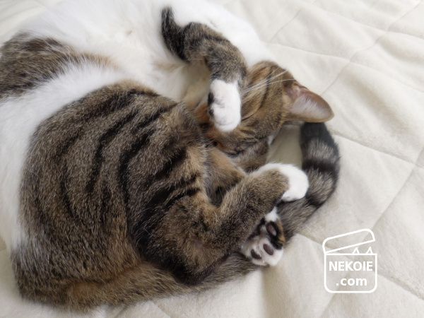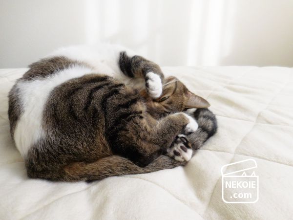平日の昼下がり。私のベッドの上には、最近日中も寝室に入りたがる弟猫が独りでごろり。