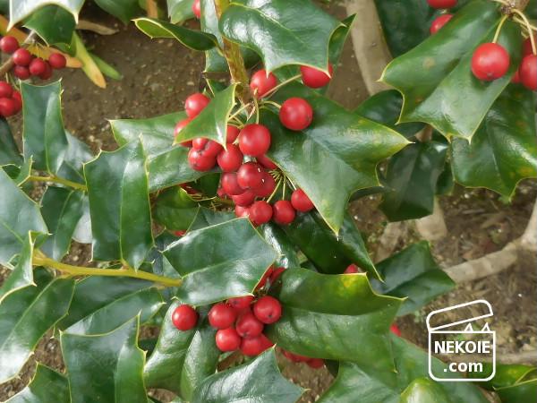 わが家の庭の赤と言えば、クリスマスホーリー。