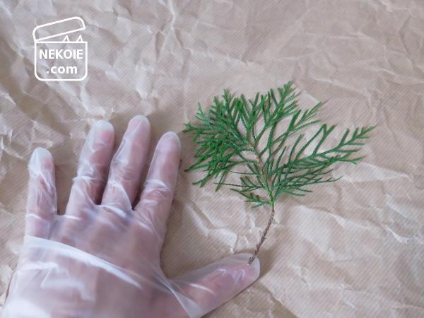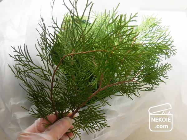 本当はドイツトウヒの枝を使いたかったのですが、ちょっと伸び悩んでいたので、コニファーを使うことに。