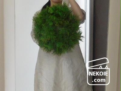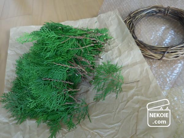 ちなみにコニファーをまとった土台のリース、直径35cm強になってしまいました。お店の方から聞いていたけれど、ちょっと大きすぎたかも。
