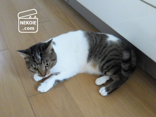 ちょっといたずらをしていたので、「こらっ」と叱ったところ、走って逃げて行った猫です。徒歩で追いかけて、見つけるとこの状態。おそらく悪いことをした、という自覚があります。