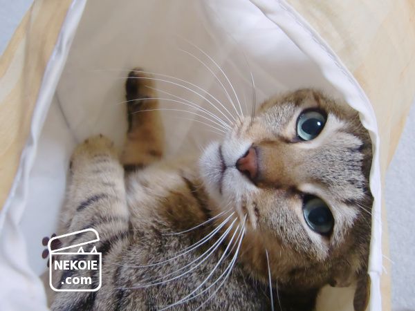 本日、兄猫が行方不明! と慌ててさがしていたら、トンネルの中にいました。