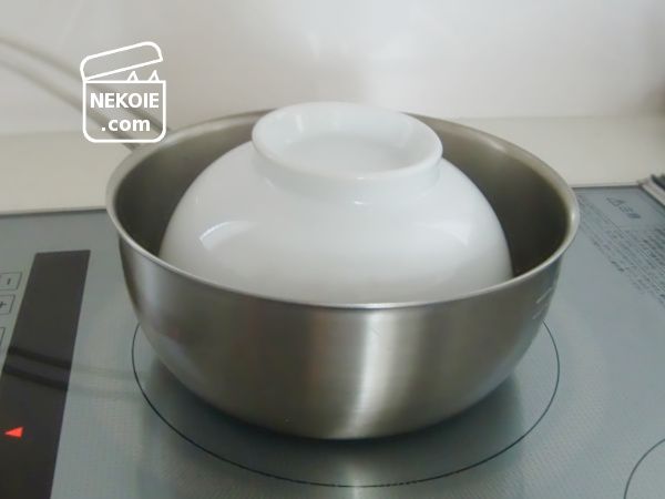 ただわが家に常備された熱湯はなく(その都度沸かす必要がある)、レンチンは時間も光熱費もかかります。鍋の上にかざすのは手間だけでなく、火傷の心配もありました。