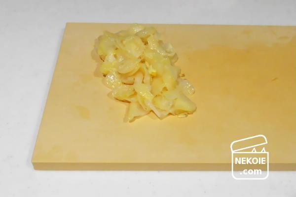しっかり絞り切った中ワタは、捨てる方(触れられていないレシピ)が多かったのですが、香りが良いので使おうと思います。