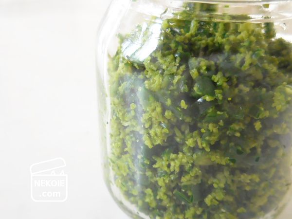 乾燥粉末タイプのものではなくて、生の仕上がり。フードプロセッサーなどがあれば舌ざわりのよいペースト状態にもできますが、私は毎年手作業でできる範囲のことだけ。