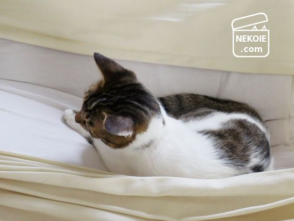少し前にハンモックの上に座布団を敷いてあげたら、寝心地を気に入ってもらえた様子。