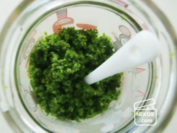 乳鉢やすり鉢などで圧をかけてもいいのだけれど、今回はスプーンの背で軽く押しながら混ぜるだけにしました。