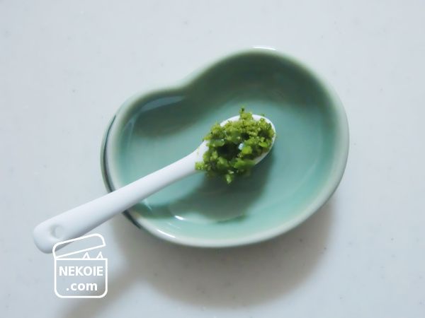 青唐辛子は種を取り除いて、できるだけ細かくみじん切り。この時点で重さを量っておきます(今回は30gほどでした)。